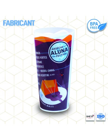 Le gobelet des amateurs de pintes de bière ! Ce verre vous accompagnera aussi bien dans les festivals de musique, les salles de concert que les stades. Contenant unique sur certaines manifestations grâce à ses graduations imprimées en 25cl et 50cl. Il est souvent le compagnon de jeu du CUP 30 dans les festivals.